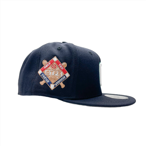 ONLY THE FRESH SURVIVE NAVY 59FIFTY OTFS WHITE w. MINT "O" LOGO GREY UNDERVISOR